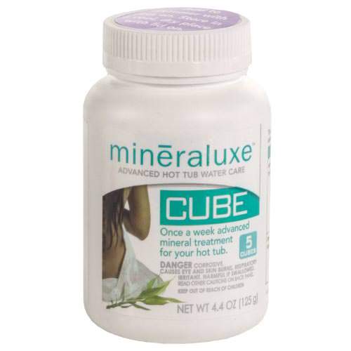 • The Mineraluxe Cube is the star of the Mineraluxe system. It's an advanced weekly mineral treatment, featuring a blend of natural minerals fused with advanced cleanse and repel technology. It will leave your hot tub squeaky clean and will dramatically reduce the scaling of heaters, jets, surfaces and equipment.